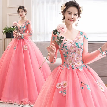 Long Sleeve Quinceanera Dresses V Neck Masquerade Ball Gown Tulle Sweet 16 Dresses vestido de 15 anos Garments
