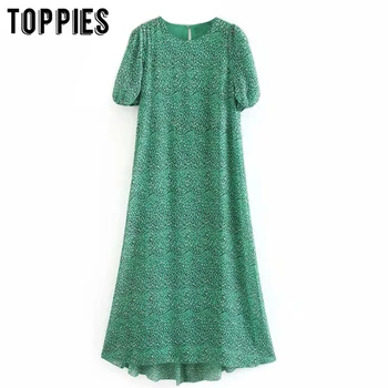 green leopard maxi dress 2020 summer short sleeve t-shirt dress women round neck bohomian clothes Garments