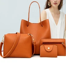 4Pcs New Fashion Womens Bag Solid Soft Pu Leather crossbody bags for women Versatile Zipper Elegant Wine Red female Handbag Purses & Wallets