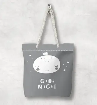 Else Gray White Good Nigh Sleep Prince Scandinavian White Rope Handle Canvas Bag Cartoon Print Zippered Tote Bag Shoulder Bag Purses & Wallets