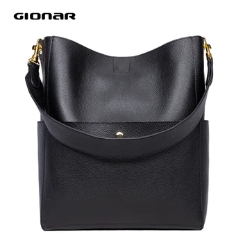 GIONAR RFID Soft Genuine Real Leather Bucket Tote Bag Women Designer Two Sets Purse Handbag Soft Leather Large Shoulder Bags Purses & Wallets