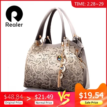 REALER women handbags hollow out ombre floral print shoulder crossbody bags ladies pu leather totes fashion messenger bag female Purses & Wallets