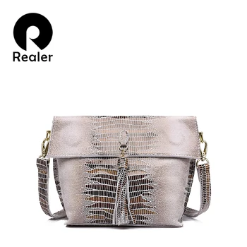 REALER women messenger bags genuine leather Shoulder crossbody bag ladies handbags tassel serpentine female student small purse Purses & Wallets