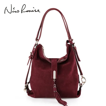 Nico Louise Women Real Suede Leather Shoulder Bag Female Leisure Nubuck Convertible Handbag Hobo Messenger Top-handle bags Purse Purses & Wallets