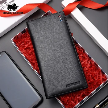 BISON DENIM Genuine Leather Wallet Male Slim Men's Luxury Long Clutch Black Card Slot Money Bag Male Purse N4391-5 Purses & Wallets