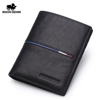 BISON DENIM Cowskin Leather Men Wallets Multi-Functional Cowhide Coin Purse Slim Genuine Leather Wallet Men Card Holders N4437 Purses & Wallets