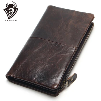 The 2020 New First Layer Of Real Leather Men's Oil Wax Retro High-Capacity Multi-Card Bit Long Wallet Clutch Men Genuine Purses & Wallets