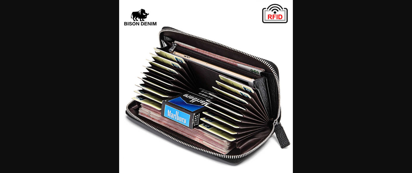 BISON DENIM Genuine leather Wallet Men Zipper Coin Pocket Long Purse Male Passport Cover RFID Blocking Card Holder Wallet W8226 Purses & Wallets