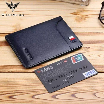 WILLIAMPOLO 2019 fashion brand men wallets genuine leather slim bifold credit card holder male pocket purse male clutch Purses & Wallets