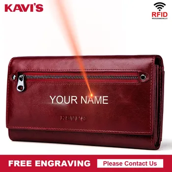 KAVIS Free Engraving Genuine Leather Women Wallet and Purse Female Coin Purse Portomonee Clamp For Money Bag Zipper Handy Perse Purses & Wallets