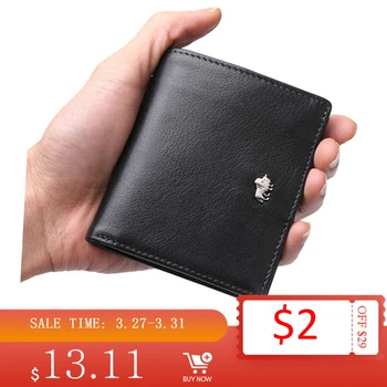 BISON DENIM Short Wallets For Men Genuine Leather Wallet Men Coin Pocket Card Holder Purse RFID Blocking Small Wallet W9317 Purses & Wallets