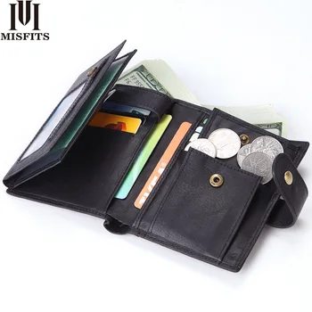 MISFITS short wallet men high quality genuine leather hasp open purse with coin pocket retro cowhide male trifold design wallets Purses & Wallets