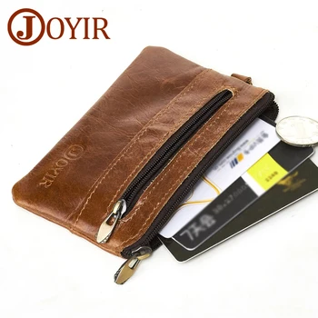 JOYIR Coin Purse Men Genuine Leather Wallets Men Wallet Women Vintage Slim Zipper Short Wallets Card Holder Pouch For Cards New Purses & Wallets