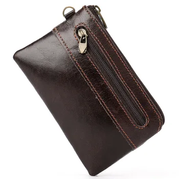New Genuine Cowhide Coin Purse Men Retro Zipper Pouch Genuine Leather Male Change Purse Money Bag Mini Zero wallet Key Bag Purses & Wallets