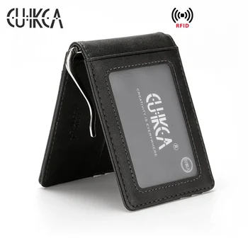 CUIKCA Unisex Rfid Wallet Purse Money Clip Women Men Metal Clip Slim Leather Wallet Business ID Credit Card Cases Travel Wallet Purses & Wallets