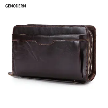 GENODERN Business Men Clutch Wallets Luxury Double Zipper Genuine Leather Long Purses Large Capacity Cowhide Wallet For Male Purses & Wallets