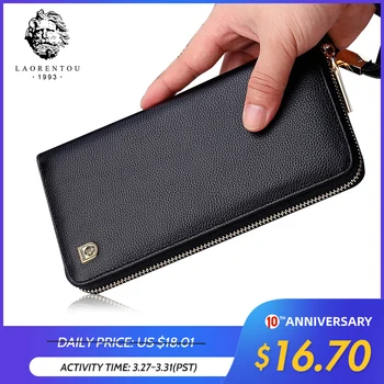 LAORENTOU Men Wallets Genuine Leather Large Capacity Zipper Wallet Men's Purse Long Wallet Bifold Wallet Clutch with Wristlet Purses & Wallets
