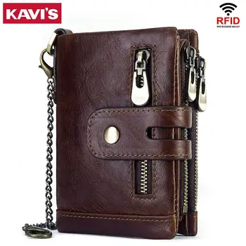 KAVIS Rfid Genuine Cow Leather Wallet Men Coin Purse Male Cuzdan PORTFOLIO MAN Portomonee Small Min Walet Pocket Fashion Hasp Purses & Wallets