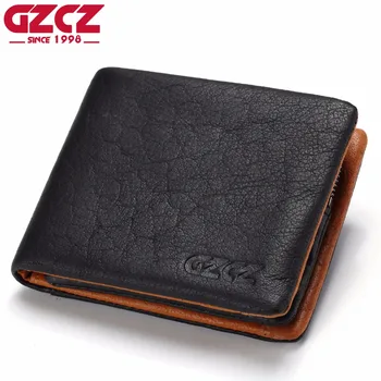 GZCZ Genuine Leather Wallet Men Coin Purse Card Holder Man Walet Zipper Design Male Vallet Clamp For Money Bag Portomonee Perse Purses & Wallets
