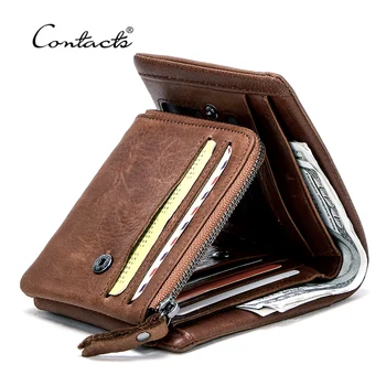 CONTACT'S Genuine Leather Men Wallets Vintage Trifold Wallet Coin Purse Male Wallet Small Card Holders Short Walet Portomonee Purses & Wallets