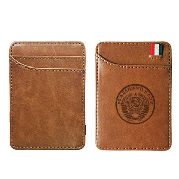 Classic Soviet Badges Sickle Hammer CCCP Leather Men Wallets Slim Wallet For Credit Cards Bifold Clamps Carteira Short portfel Purses & Wallets