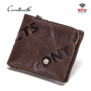 CONTACT'S 100% Genuine Leather Wallet Men Small Card Holder Portfolio Zipper Coin Purse Wallets Mini Money Bags RFID Blocking Purses & Wallets