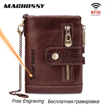 RFID 100% Genuine Leather Men Wallet Coin Purse Small Mini Card Holder Chain PORTFOLIO Portomonee Male Walet Pocket Purses & Wallets