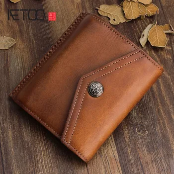 AETOO Original vintage hand-first section of the first layer of leather wallet Unisex leather buckle wallet multi-card young Purses & Wallets