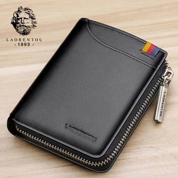 LAORENTOU Wallets Men Card Holder Man Genuine Leather Short Wallet Purse Zipper Wallets Casual Standard Wallets for Male Purses & Wallets
