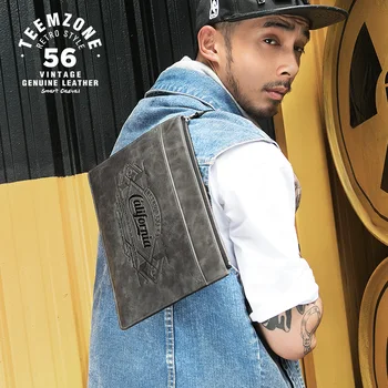 Genuine Leather Men's Wallets For Credit Card Holder IPAD Oil Wax Leather Clutch Fashion Gray Male Envelope bag 50 Purses & Wallets
