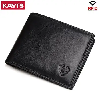 KAVIS Cow Genuine Leather Men Wallets with Coin Pocket Small Male Purse Mini Function Brown Genuine Leather with Card Holders Purses & Wallets