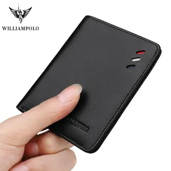WILLIAMPOLO Genuine Leather Mens Wallet Short Bifold Slim Mini Credit Card Holder Multi Card Case Organizer Purse Black Brown Purses & Wallets