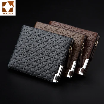 men's wallet carteira Plaid short wallets knurling leather male wallet Retro billeteras para hombre small zipper man wallet Purses & Wallets
