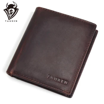 TAUREN Men Wallets Vintage Crazy Horse Genuine Leather Zipper Wallet Card Holder Coin Pocket Men's Purse Male Carteira Purses & Wallets