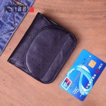 AETOO Simple retro first layer leather small wallet men and women handmade original leather short clips purse ultra-thin short Purses & Wallets