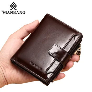 ManBang Genuine Leather Men Wallets Fashion Trifold Wallet Zip Coin Pocket Purse Cowhide Leather man wallet high quality Purses & Wallets