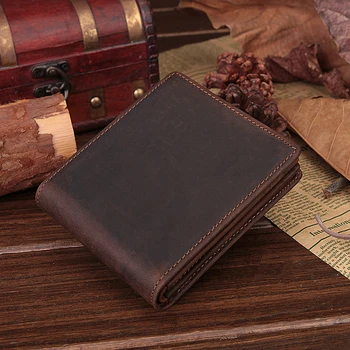 Simple Style Crazy Horse Leather Pocket Wallet with Inner Zipper Purse Card Holders Leather Coin Pocket Men's Leather Wallet Purses & Wallets