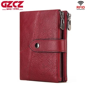 GZCZ Rfid Genuine Leather Wallet Men Crazy Horse Wallets Coin Purse Short Male Money Bag Designer Mini Red Walet Quality Purses & Wallets