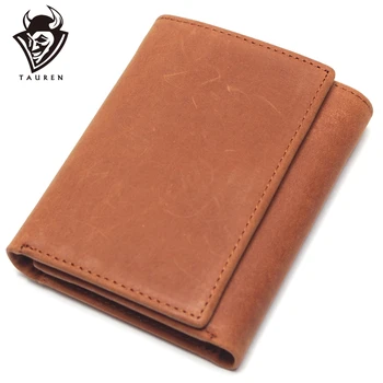 RFID Antitheft Scanning Crazy Horse Leather Wallet Hasp Leisure Men's Slim Leather Mini Wallet Case Credit Card Trifold Purse Purses & Wallets