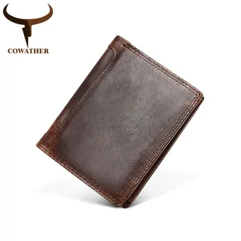 COWATHER Short men Wallets top cow genuine Crazy horse leather male purse Zipper RFID Wallet Coin bag Q523 free shipping Purses & Wallets