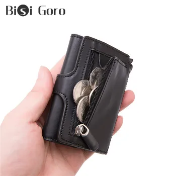 BISI GORO 2020 Top Quality Men Smart Wallet Fashion Button Money Bag Metal Aluminum Auto Pop-up RFID Travel Wallet Coin Purse Purses & Wallets