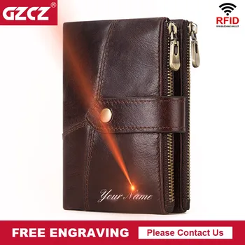 GZCZ 100% Genuine Leather Rfid Wallet Luxury Designe Men Hasp Vintage Male Purse Short Coin Pouch Multi-functional Cards Wallet Purses & Wallets