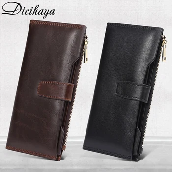 DICIHAYA Free Engraved Genuine Leather Men Wallets Fashion Purse Card Holder Cowhide Carteira Vintage Long Wallet Clutch Bag Purses & Wallets